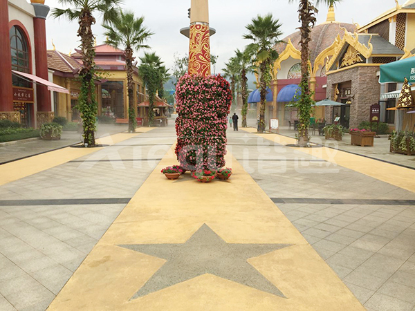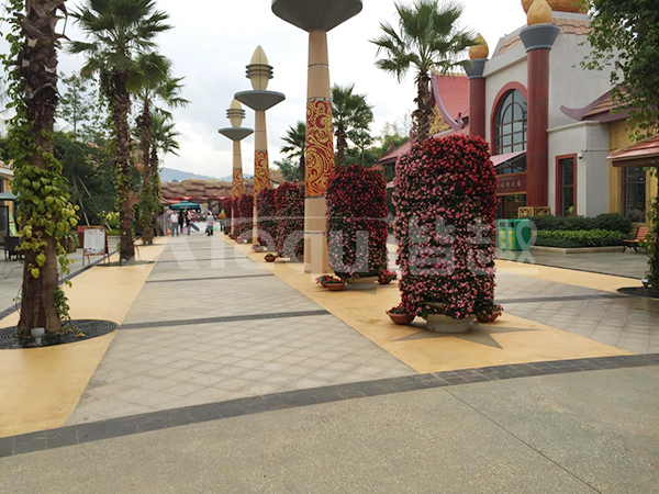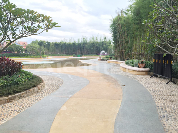鋪裝類型:壓印藝術(shù)地坪、洗砂面藝術(shù)地坪、礫石面藝術(shù)地坪