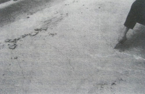 如圖-13示,某工地梁板結(jié)構(gòu)的裂縫情況,當時天干風大,澆筑后未及時覆蓋,混凝土表面迅速失水開裂,當時混凝土并未初凝,但用壓抹的方法已無法使裂縫閉合,操作人員采用木榔頭敲砸的方法企圖使裂縫閉合,出現(xiàn)了圖示三種情況。由此可以看出,早期塑性裂縫在發(fā)現(xiàn)及時、處理得當?shù)那闆r下,是可以避免的。
