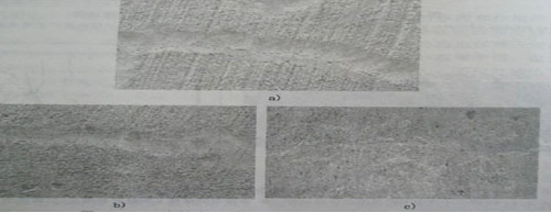a) 二次抹面(振搗)無效的裂縫; b)、c) 二次抹面(振搗)消除和減小了的裂縫