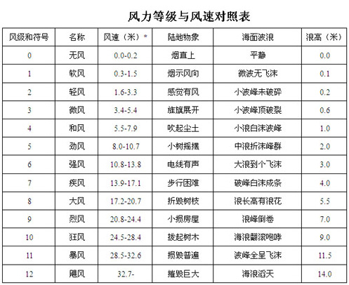 施工單位應(yīng)根據(jù)地區(qū)氣象部門的觀測數(shù)據(jù),(施工單位應(yīng)自備簡易溫濕度測定儀),在混凝土施工當天的外界最高溫度,最低相對濕度,最大風速,從附表中查出水分蒸發(fā)量,如果超過0.6kg/m3/h時,可以推定混凝土產(chǎn)生塑性開裂的可能性很大,必須采取措施進行預(yù)防。應(yīng)注意,當水分蒸發(fā)量超過上述值時,只要混凝土澆筑到模板內(nèi),不管在什么時間,都有可能出現(xiàn)開裂,應(yīng)防止有人認為的“開裂應(yīng)在混凝土硬化后才出現(xiàn)”的觀點,隨時根據(jù)天氣情況采取技術(shù)措施。對表中溫度、濕度的數(shù)值,宜按當時具體情況予以實際測量,風速可采用附表的《風力等級與風速對照表》進行判斷,同時,應(yīng)注意具體施工位置是否在山上、風口或高層,這些位置的風速與地面風速有較大差距,而預(yù)報風速一般是指地面風速。應(yīng)以判斷出的現(xiàn)象進行查表確定風速。